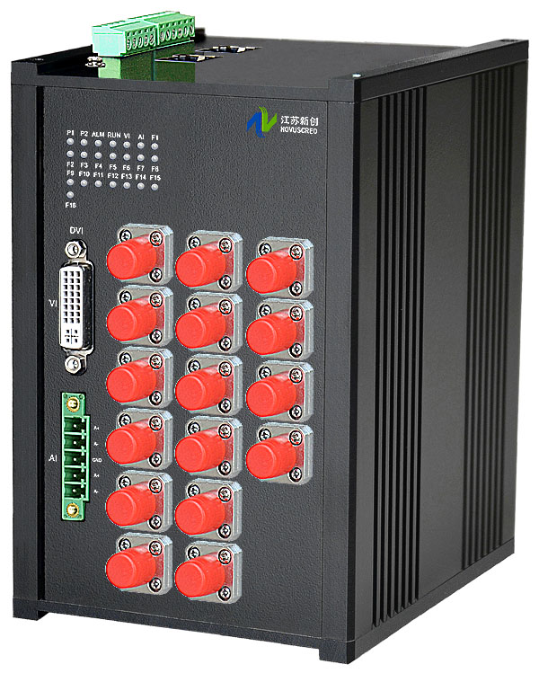 1進16出DVI模擬音頻光纖分配器,內置數字均衡器/抖動去除器可選,卡儂/端子/3.5mm/RCA接口,獨立/冗余/總線供電(DC18~36V/5V),導軌,工業型 |