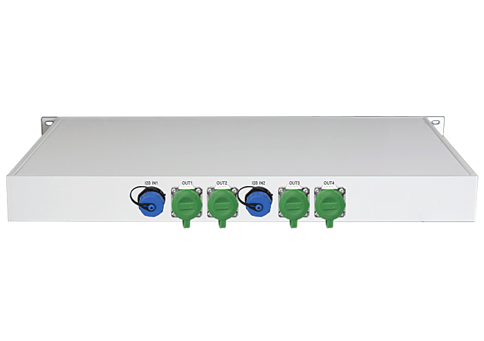 1進4出I2S光纖分配器,內(nèi)置數(shù)字均衡器/抖動去除器可選,獨立/冗余供電,壁掛,通用型 |
