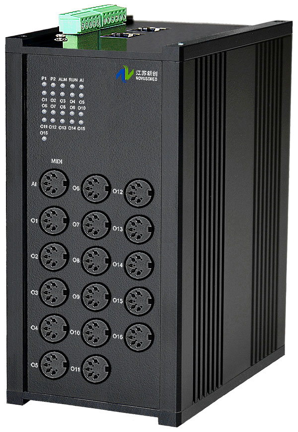 1進16出 MIDI分配器,獨立/冗余/總線供電(DC18~36V/5V),導軌,工業型 |