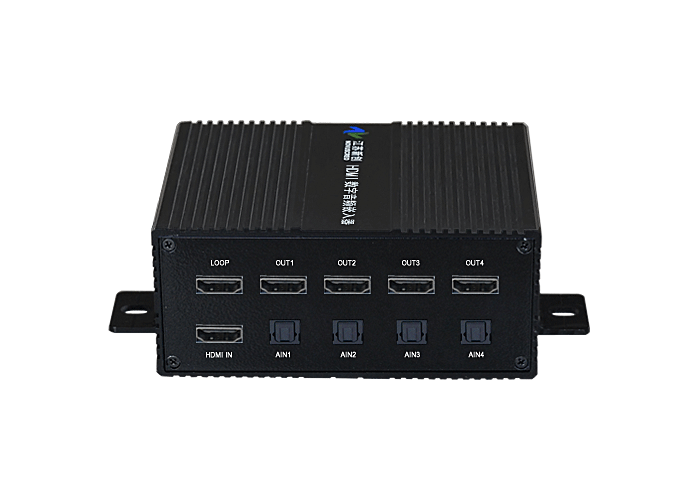 數字音頻HDMI嵌入器,1路HDMI輸入,環路直通輸出,4路嵌入分配輸出,4路數字音頻卡儂/BNC/RCA/光纖接口輸入,獨立/冗余供電,壁掛,通用型 |