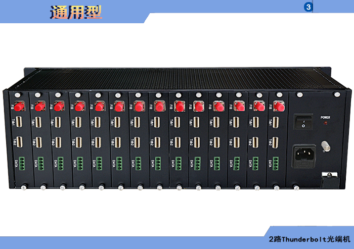 2路Thunderbolt簡單型光端機發射機/接收機,數據可選,單模/多模/塑料,1/2纖,ST/FC/SC/LC/SFP光接口,15/20/25/32dB,獨立/冗余供電,插卡,通用型 |