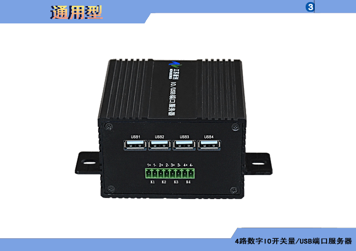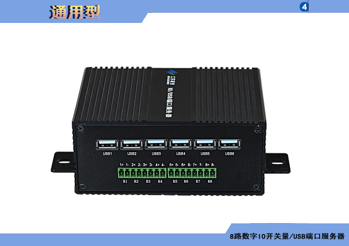 4路數字IO開關量/USB端口服務器,1路USB主口輸入、可選多路下游口輸出,可選內置數字隔離器,最大隔離電壓2500/5000Vrms,可選內置5/10KA浪涌保護器,獨立/冗余/總線供電(DC18~36V/5V),壁掛/插卡/機架,通用型 |