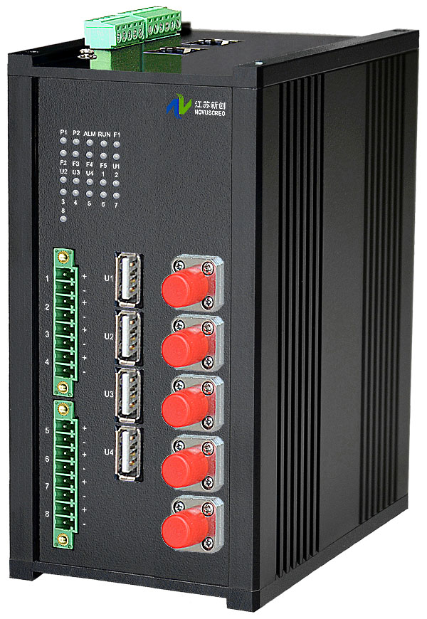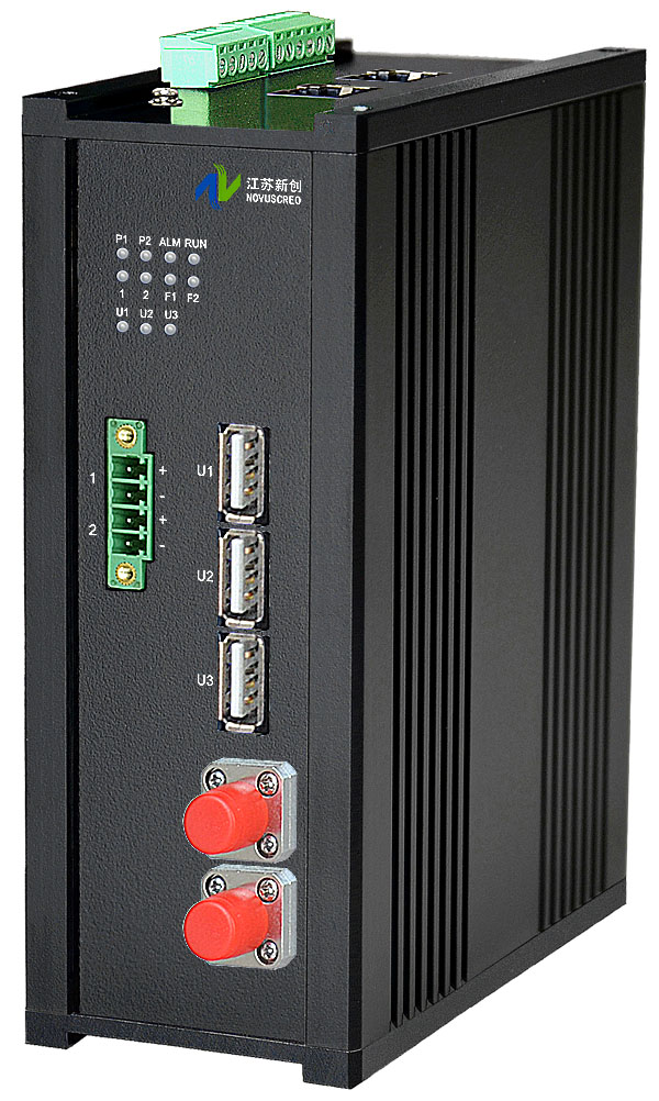 數字IO開關量/USB光電端口服務器是江蘇新創自主研發創新,專門為USB口與多路數字IO開關量接口通信而設計。通過使用本光電端口服務器,你可以輕松將多路數字IO開關量串口設備如傳感器、變送器、編碼器、計數器、變頻器、伺服器、執行器、RFID讀寫終端、模數轉換設備、探測器、煙感探頭、LED燈光控制、遙控遙測遙信自動化裝置、儀器儀表及測量計量設備、IO控制終端、雨刷、加熱器、控制報警器、紅外補光等設備輸出的數字IO開關量接口信號通過電纜或單模或多模或塑料光纖接口與中心的計算機、工控機、POS機、中控系統、數據采集或控制設備、計量計費系統、機器視覺及運動控制系統等主機或中央控制系統等設備輸出的USB主機接口相連,這樣大大方便了中心主機及軟件系統同時與多臺數字IO開關量設備或裝置完成數據通信、采集和控制。USB接口自動兼容和支持USB1.1全速(12Mbps)、USB2.0高速(480Mbps)標準。支持USB主口輸入光電可選,下游級聯輸出口光電可選。兼容Windows 2000/XP/7/8/Vista、MacOS、Linux等操作系統。數字IO開關量接口兼容和符合IEC61131-2 Type-1/2/3標準,兼容和符合TTL/COMS/LVTTL/LVCMOS標準,兼容和符合UL508標準。數字IO開關量支持無源按鈕、TTL/COMS/LVTTL/LVCMOS、24/48VDC或24/48/100/110/20/200/220/240VAC等等各種數字IO關量輸入接口。輸入接口支持保護、隔離器及去抖濾波功能。支持TTL/COMS/LVTTL/LVCMOS、MOSFET、可控硅、固態繼電器、信號繼電器及大電流功率繼電器等等數字IO開關量輸出接口,支持交流、直流觸點輸出。支持觸點負載過流保護,提供自動、手動及遙控過流復位方式。數字IO開關量支持源型和漏型輸入和輸出方式。采用先進的高速數字隔離技術,其傳輸速度和熱穩定性遠高于普通的光電隔離器;內置15KV靜電保護器,可有效防止設備之間由于地不平衡引起的串口損壞及靜電擊穿。內置的高性能的兩級粗細抗雷擊保護裝置,支持共模和差模兩種保護模式。高達10KA通流量的第一級粗保護電路能夠有效的降低和抑制雷電、浪涌大信號沖擊;第二級精細保護電路能夠有效去除小信號殘留電壓沖擊及干擾信號。所有保護電路都采用高可靠、低殘壓、低寄生電容及快速響應保護時間的防雷器件,因而更有效的保護了數字IO開關量通信接口免受雷電及浪涌信號沖擊而損壞,并且不會引起信號畸變和傳輸帶寬下降。光纖、數字隔離和防雷器的雙重保護,使得數字IO開關量通信接口不但免受雷電及浪涌沖擊,而且從電氣上實現了隔離,因此使得設備的數字IO開關量通信接口得到高可靠保護。