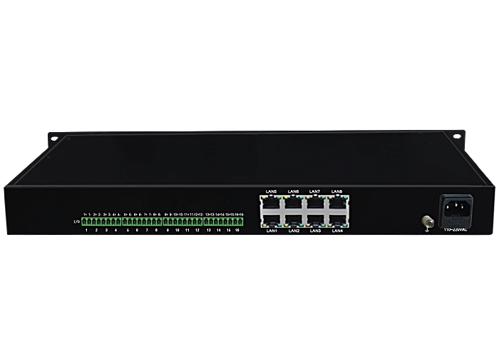 16路數字IO開關量/以太網端口服務器,可選多路10/100M或10/100/1000M以太網接口,可選內置數字隔離器,最大隔離電壓2500/5000Vrms,可選內置5/10KA浪涌保護器,獨立/冗余供電,機架,通用型 |