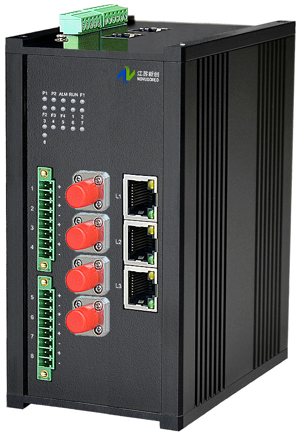 數(shù)字IO開關量/以太網(wǎng)光電端口服務器是江蘇新創(chuàng)自主研發(fā)創(chuàng)新,專門為多路數(shù)字IO開關量接口與以太網(wǎng)TCP/IP協(xié)議轉(zhuǎn)換和通信而設計。通過使用本光電端口服務器,你可以輕松地將數(shù)字IO開關量設備如傳感器、變送器、編碼器、計數(shù)器、變頻器、伺服器、執(zhí)行器、RFID讀寫終端、模數(shù)轉(zhuǎn)換設備、探測器、煙感探頭、LED燈光控制、遙控遙測遙信自動化裝置、儀器儀表及測量計量設備、IO控制終端、雨刷、加熱器、控制報警器、紅外補光等設備輸出的數(shù)字IO開關量接口信號轉(zhuǎn)換成10/100M或10/100/1000M以太網(wǎng)接口并通過電纜或單模或多模或塑料光纖與中心的計算機、工控機、POS機、中控系統(tǒng)、數(shù)據(jù)采集或控制設備、計量計費系統(tǒng)、機器視覺及運動控制系統(tǒng)等主機或中央控制系統(tǒng)等設備輸出的以太網(wǎng)端口及網(wǎng)絡交換機、路由器等設備互聯(lián)互通。端口服務器內(nèi)部集成了TCP/IP協(xié)議棧,能夠輕松將各種數(shù)字IO開關量串行異步協(xié)議的信號轉(zhuǎn)換或封裝成具有TCP/IP或UDP協(xié)議的網(wǎng)絡信號,以便在各種以太網(wǎng)上傳輸。以太網(wǎng)接口支持10/100M或10/100/1000M以太網(wǎng)自適應速率,支持全雙工或半雙工,支持網(wǎng)線自動交叉功能。端口服務器支持TCP Server/Client、 UDP和 實時串口驅(qū)動等工作方式。支持WEB服務器、Windows超級終端、串口及AT命令、Telnet等設置和管理方式。 支持DNS域名通訊, 支持多重安全接入及非法訪問保護機制,提供防火墻、多IP地址過濾等等。端口服務器的源和目標IP地址和端口可自由設定,支持本地和遠程設置。數(shù)字IO開關量接口兼容和符合IEC61131-2 Type-1/2/3標準,兼容和符合TTL/COMS/LVTTL/LVCMOS標準,兼容和符合UL508標準。數(shù)字IO開關量支持無源按鈕、TTL/COMS/LVTTL/LVCMOS、24/48VDC或24/48/100/110/20/200/220/240VAC等等各種數(shù)字IO關量輸入接口。輸入接口支持保護、隔離器及去抖濾波功能。支持TTL/COMS/LVTTL/LVCMOS、MOSFET、可控硅、固態(tài)繼電器、信號繼電器及大電流功率繼電器等等數(shù)字IO開關量輸出接口,支持交流、直流觸點輸出。支持觸點負載過流保護,提供自動、手動及遙控過流復位方式。數(shù)字IO開關量支持源型和漏型輸入和輸出方式。數(shù)字IO開關量接口采用先進的高速數(shù)字隔離技術,其傳輸速度和熱穩(wěn)定性遠高于普通的光電隔離器;內(nèi)置15KV靜電保護器,可有效防止設備之間由于地不平衡引起的接口損壞及靜電擊穿。內(nèi)置的高性能的兩級粗細抗雷擊保護裝置,支持共模和差模兩種保護模式。高達10KA通流量的第一級粗保護電路能夠有效的降低和抑制雷電、浪涌大信號沖擊;第二級精細保護電路能夠有效去除小信號殘留電壓沖擊及干擾信號。所有保護電路都采用高可靠、低殘壓、低寄生電容及快速響應保護時間的防雷器件,因而更有效的保護了數(shù)字IO開關量通信接口免受雷電及浪涌信號沖擊而損壞,并且不會引起信號畸變和傳輸帶寬下降。光纖、數(shù)字隔離器和防雷器的雙重保護,使得數(shù)字IO開關量通信接口不但免受雷電及浪涌沖擊,而且從電氣上實現(xiàn)了隔離,因此使得設備的數(shù)字IO開關量通信接口得到高可靠保護。