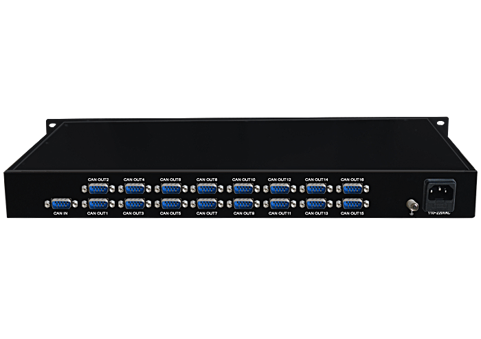 1進16出CAN集線器(HUB),125K/1M/2M/5Mbps速率可選,獨立/冗余供電,機架,通用型 |