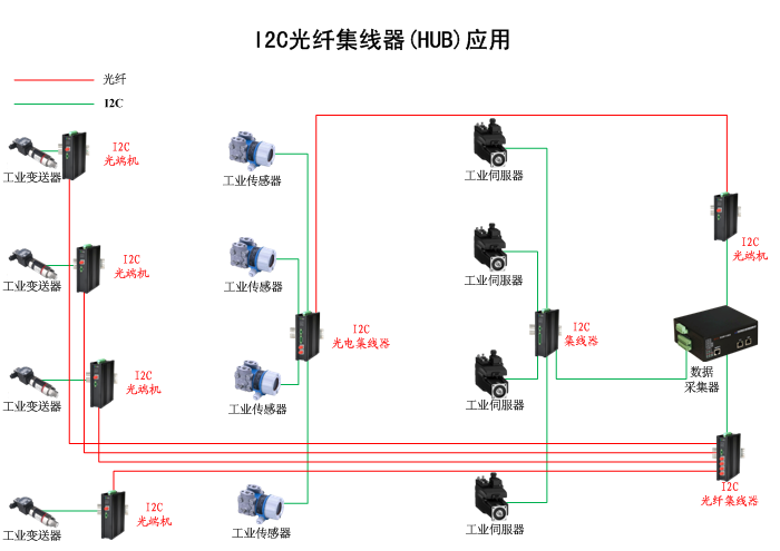 I2C光纖集線器(HUB)已經廣泛應用在石油化工、礦山開采及冶煉廠礦企業、高鐵及地鐵軌道交通、橋梁隧道、城市管理公交BRT及公用設施、海島港灣碼頭、大壩及河道水利、燃煤氣自來水及污水處理、能源發電和輸配變電網、環境監測和保護、物聯網及大數據機房控制中心、食品加工、工業自動化自動控制及數據采集、機器人及視覺控制、傳感及執行器運動控制、醫學影像、船舶運輸、物探及地震海洋勘探、海上及水下作業及鉆探井平臺的PLC/DCS等自動控制及數據采集系統中。