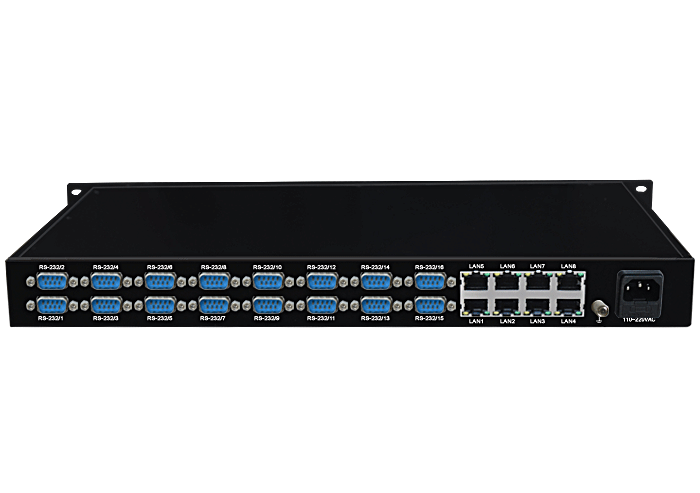 16路RS-232/以太網端口服務器,可選多路10/100M或10/100/1000M以太網接口,可選內置數字隔離器,最大隔離電壓2500/5000Vrms,可選內置5/10KA浪涌保護器,獨立/冗余供電,機架,通用型 |
