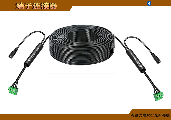 RS-232有源光纜AOC/光纖導線支持5V、12V(9~18V) 、24V(18~36V)、48V(36~72V)直流電源輸入設計,也可通過有源光纜中電纜混合的方式遠距離供電。