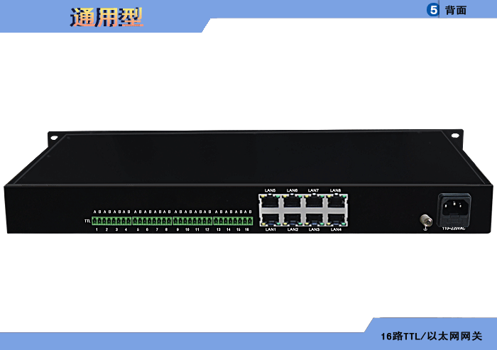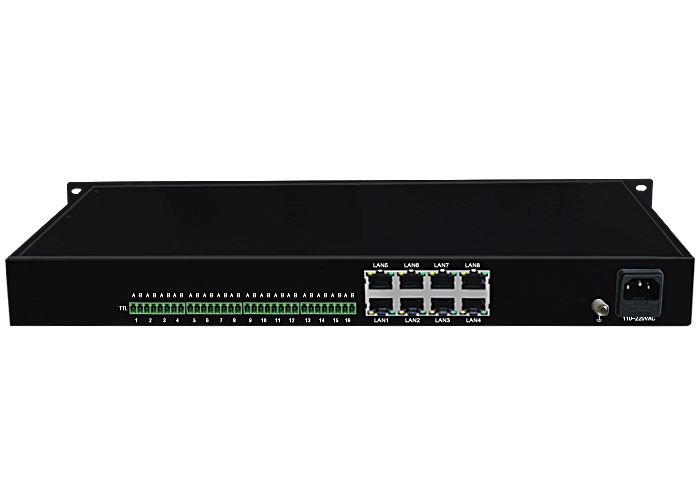 16路TTL/以太網網關,可選多路10/100M或10/100/1000M以太網電纜或光纖接口,可選內置數字隔離器,最大隔離電壓2500/5000Vrms,可選內置5/10KA浪涌保護器,獨立/冗余供電,機架,通用型 |