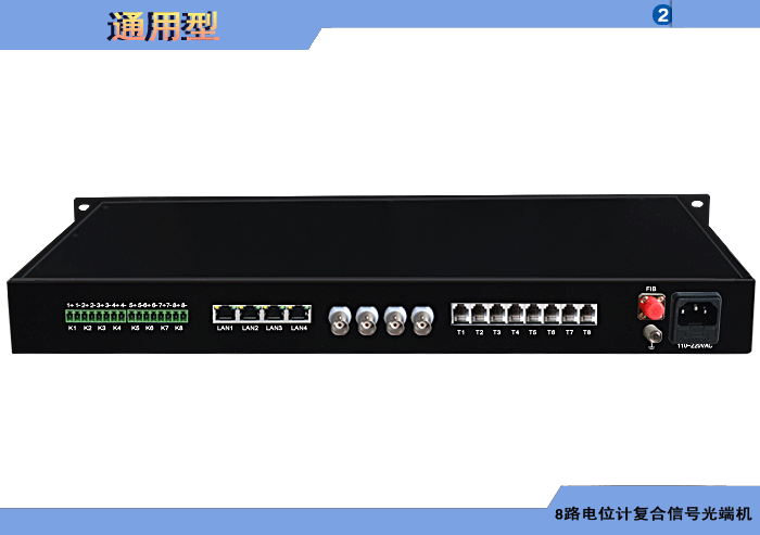 8路電位計復合信號型光端機發(fā)射機/接收機,復合信號可選,單模/多模/塑料,1/2纖,ST/FC/SC/LC/SFP光接口,15/20/25/32dB,獨立/冗余供電,機架,通用型 |
