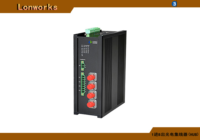 1進(jìn)8出Lonworks光電集線器(HUB),RS-485/雙絞線/電力線接口可選,78K/1.25Mbps,復(fù)合信號(hào)可選獨(dú)立/冗余供電,壁掛,通用型 |