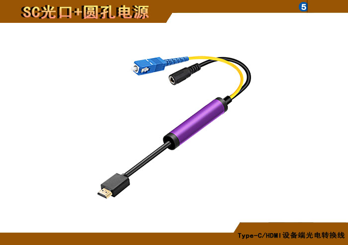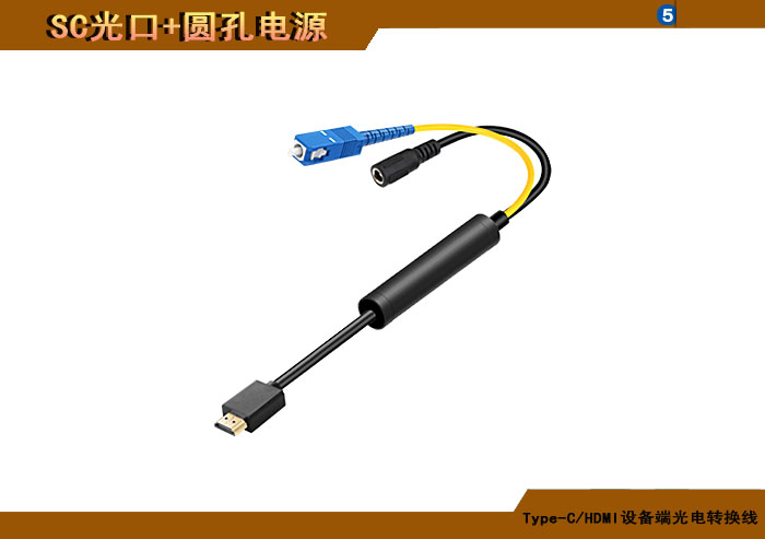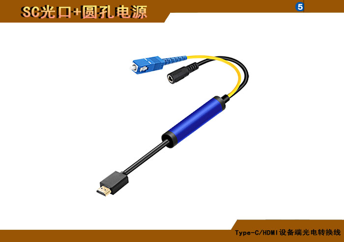 Type-C/HDMI設(shè)備端光電轉(zhuǎn)換線 SC光纖接口+圓孔電源接口 |
