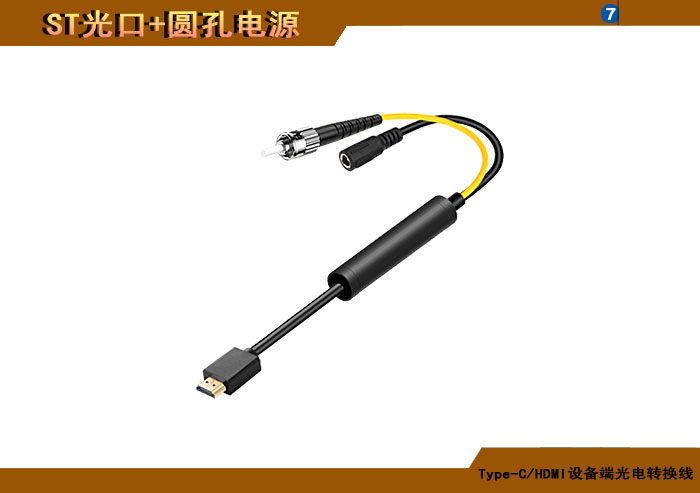 Type-C/HDMI設(shè)備端光電轉(zhuǎn)換線 ST光纖接口+圓孔電源接口 |