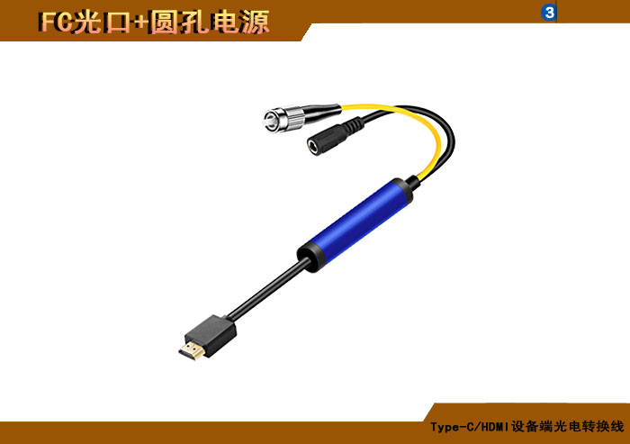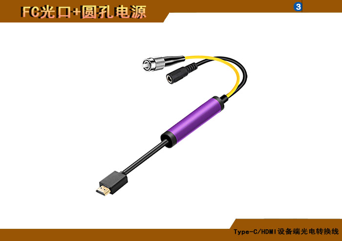 Type-C/HDMI設(shè)備端光電轉(zhuǎn)換線 FC光纖接口+圓孔電源接口 |
