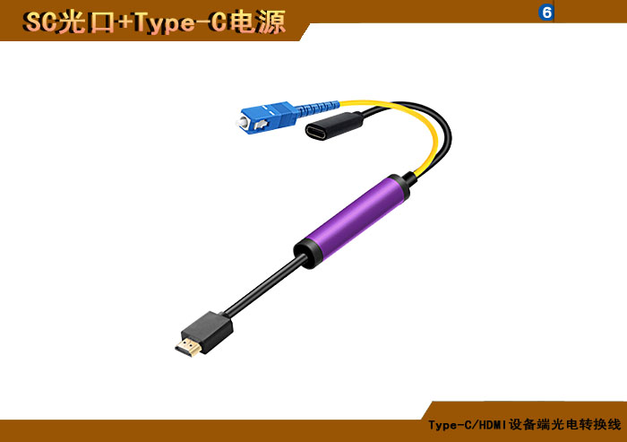 Type-C/HDMI設(shè)備端光電轉(zhuǎn)換線 SC光纖接口+Type-C電源接口 |