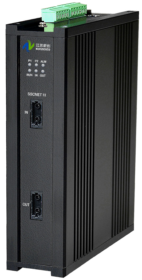 SSCNET III POF/PCF光纖中繼器是江蘇新創自主研發創新,專門為工業自動化控制系統、PLC/DCS系統、信號測量及數據采集系統的現場各種IO設備、儀器儀表、電壓、電流、電量、溫度、壓力、流量、液位、電位、位置、煙霧、化學元素檢測等等各種傳感器、編碼器、計數器、變頻器、伺服器、執行器設備輸出的SSCNET III POF/PCF光纖信號中繼延長一倍而設計。透明符合和兼容Mitsubishi SSCNET III 總線標準,透明支持任意SSCNET III上層協議,支持最大50Mbps的總線工作速率,支持最大從站數64個,支持最大傳輸距離0~100米(PCF-200/230um光纖)或20米(POF-980/1000um光纖),波長650nm。支持輸入、輸出及電源三端隔離。