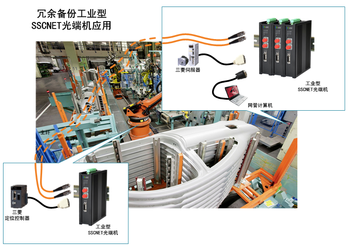 SSCNET冗余備份型光端機可根據用戶的應用場合和需求不同而特殊設計,產品可分為獨立模塊DIN35mm導軌模塊固定型。