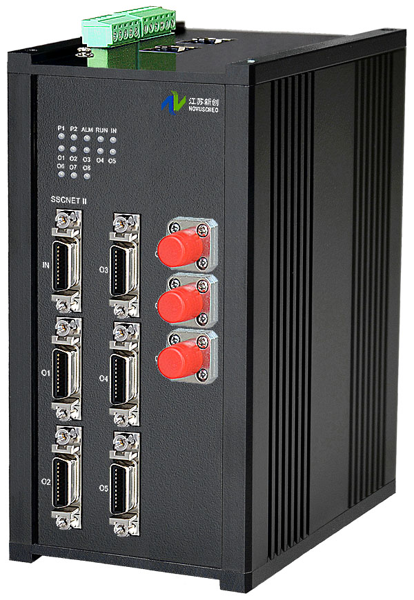 SSCNET II光電集線器(HUB) 是江蘇新創自主研發創新,專門為工業自動化控制系統、PLC/DCS系統、信號測量及數據采集系統的現場各種IO設備、儀器儀表、電壓、電流、電量、溫度、壓力、流量、液位、電位、位置、煙霧、化學元素檢測等等各種傳感器、編碼器、計數器、變頻器、伺服器、執行器輸出的SSCNET II信號同時分配或擴展輸出成多路,這樣大大方便了多個用戶同時共享同一總線。透明符合和兼容Mitsubishi SSCNET II總線標準,采用底層轉換技術和無延遲自動雙向切換技術,透明支持任意SSCNET II上層協議,支持最大5.6Mbps的總線工作速率。內置電纜自動均衡器和時鐘重定時功能,因此大大降低及保證了輸出波形失真和數字信號抖動的要求,提高了輸入輸出信號質量,單段電纜總線長度可達30米,最大節點數6軸/系統。支持輸入、輸出及電源三端隔離,采用先進的高速數字隔離技術,其傳輸速度和熱穩定性遠高于普通的光電隔離器;內置15KV靜電保護器,可有效防止設備之間由于地不平衡引起的串口損壞及靜電擊穿。內置的高性能的兩級粗細抗雷擊保護裝置,支持共模和差模兩種保護模式。高達10KA通流量的第一級粗保護電路能夠有效的降低和抑制雷電、浪涌大信號沖擊;第二級精細保護電路能夠有效去除小信號殘留電壓沖擊及干擾信號。所有保護電路都采用高可靠、低殘壓、低寄生電容及快速響應保護時間的防雷器件。