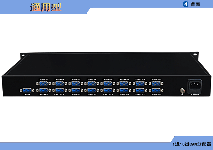 1進16出CAN集線器(HUB),125K/1M/2M/5Mbps速率可選,獨立/冗余供電,機架,通用型 |