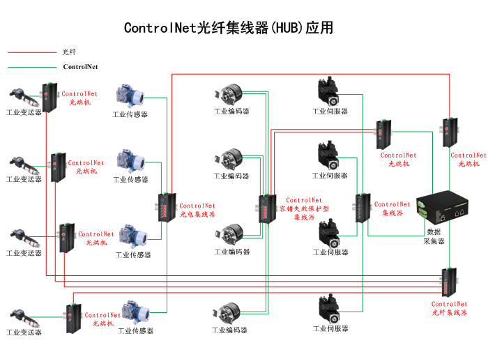 1/2/4/8/16進2/4/8/16/32出ControlNet光纖集線器(HUB),獨立/冗余供電,壁掛/機架,高可靠型 |