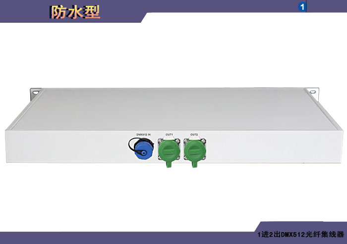 DMX512光纖集線器(HUB)防水型封裝采用IP67/68等高等級防水機箱、防水接插件和連接線纜,使用相應的高性能防水密封、無浸潤和抗腐蝕技術,可以使得產品長期工作在高濕度、雨淋、風雪災難、水下作業海底鉆探和井下救災等需要高IP等級密封防水和腐蝕場合。