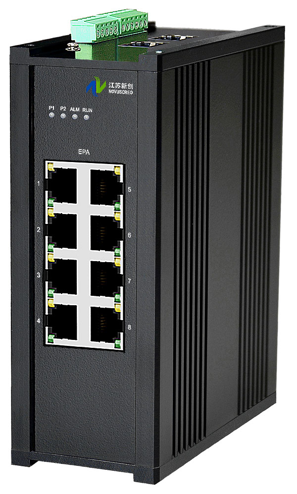 EPA電口交換機采用江蘇新創先進FastRing 處理技術及的快速生成樹和多成樹協議,因此能夠支持各種建總線級聯鏈形、星型分叉形、環網及多環相切形、T形、網格型等各種復雜的高可靠冗余網絡,30ms的保護恢復時間使得交換機尤其適合在高可靠的工業自動化及實時快速網絡通信中。