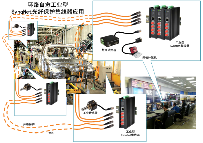 SynqNet環網型光纖保護集線器(HUB)已經廣泛應用在石油化工、礦山開采及冶煉廠礦企業、高鐵及地鐵軌道交通、橋梁隧道、城市管理公交BRT及公用設施、海島港灣碼頭、大壩及河道水利、燃煤氣自來水及污水處理、能源發電和輸配變電網、環境監測和保護、物聯網及大數據機房控制中心、食品加工、工業自動化自動控制及數據采集、機器人及視覺控制、傳感及執行器運動控制、醫學影像、船舶運輸、物探及地震海洋勘探、海上及水下作業及鉆探井平臺的PLC/DCS等自動控制及數據采集系統中。