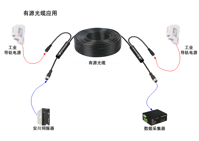 MECHATROLINK II有源光纜AOC/光纖導(dǎo)線支持5V或24V(18~36V)直流電源輸入設(shè)計(jì),也可通過有源光纜中電纜混合的方式遠(yuǎn)距離供電。
