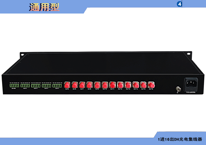 | 配置 | 1進16出DH光電集線器(HUB),獨立/冗余供電,機架,通用型 | ||