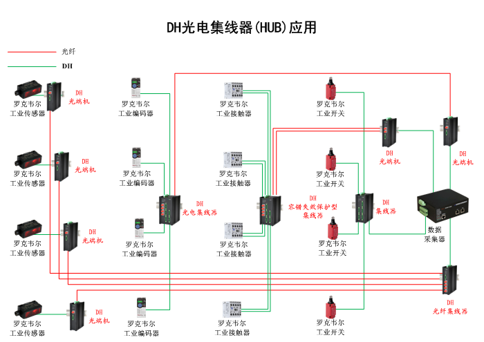 DH光電集線器(HUB)已經廣泛應用在石油化工、礦山開采及冶煉廠礦企業、高鐵及地鐵軌道交通、橋梁隧道、城市管理公交BRT及公用設施、海島港灣碼頭、大壩及河道水利、燃煤氣自來水及污水處理、能源發電和輸配變電網、環境監測和保護、物聯網及大數據機房控制中心、食品加工、工業自動化自動控制及數據采集、機器人及視覺控制、傳感及執行器運動控制、醫學影像、船舶運輸、物探及地震海洋勘探、海上及水下作業及鉆探井平臺的PLC/DCS等自動控制及數據采集系統中。